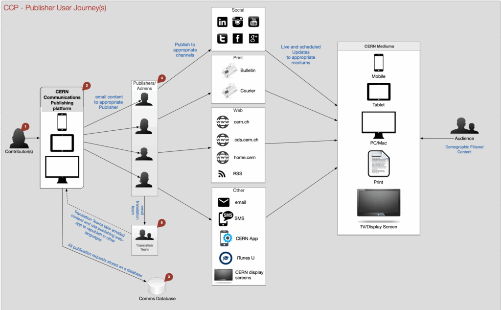 • CCP (CERN Communication Publishing platform) – a structured interface for contributors and publishers. It streamlined publishing requests, ensured content was optimised for multiple channels and formats, and embedded governance through approvals, templates, and metadata tagging.