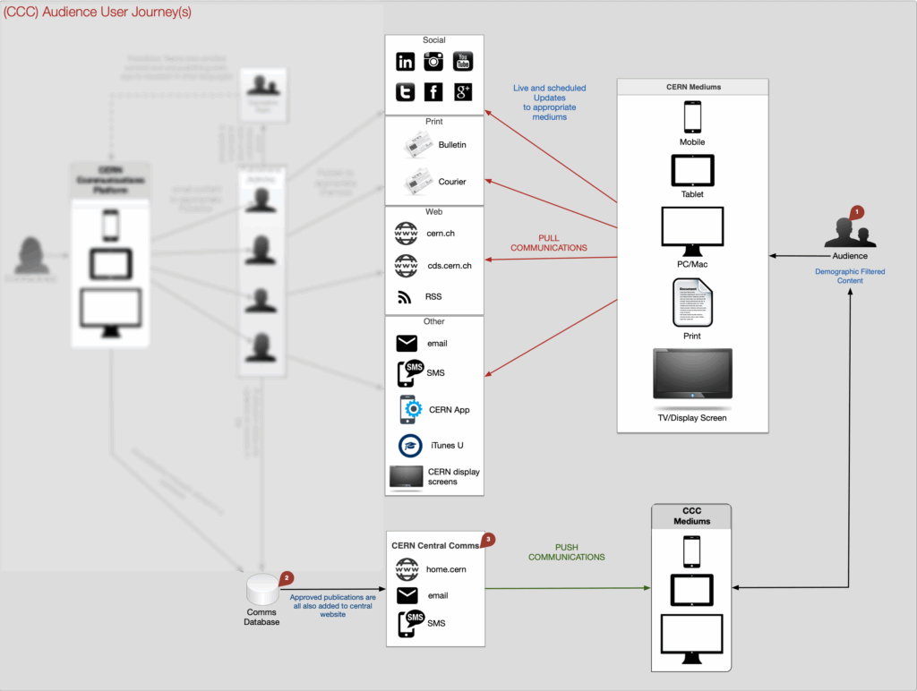 The project delivered a complete Service Design and Discovery report, providing CERN with – for the first time – a holistic map of its communications ecosystem. This documented every communication origin point, channel, technology, user type, and governance model, and incorporated permissions, security, and approval workflows.